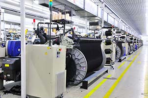 weaving plant in which perfectly produced indigo yarns turn into high quality fabrics.